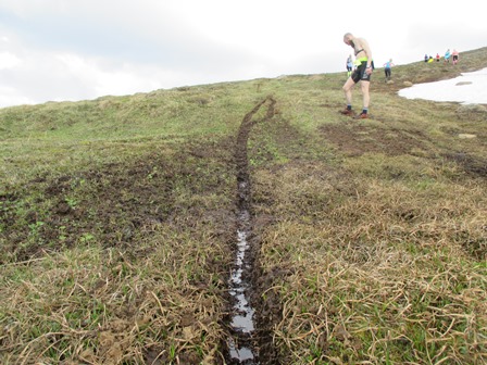 Eftir stutta viðdvöl við Þingmannalæk var hlaupið aftur norður yfir lækinn og upp Járnhrygg. Þarna var greinileg slóð víðast hvar og vörður þar að auki, þannig að villuhættan var lítil. Af ummerkjum mátti sjá að einhver hafði verið of fótfúinn til að fara þessa leið hlaupandi, því að þarna voru allt of greinileg og allt of djúp för eftir torfæruhjól sem höfðu skorið landið sundur, bæði á grónum og ógrónum köflum. Þó að komið væri fram undir miðjan júní var enn snjór í lautum, klaki ekki alls staðar farinn úr jörðu og djúpur aur í holtum. Vélknúin ökutæki eiga ekkert erindi í svona aðstæður og geta valdið miklum skaða sem náttúran er áratugi að lagfæra.