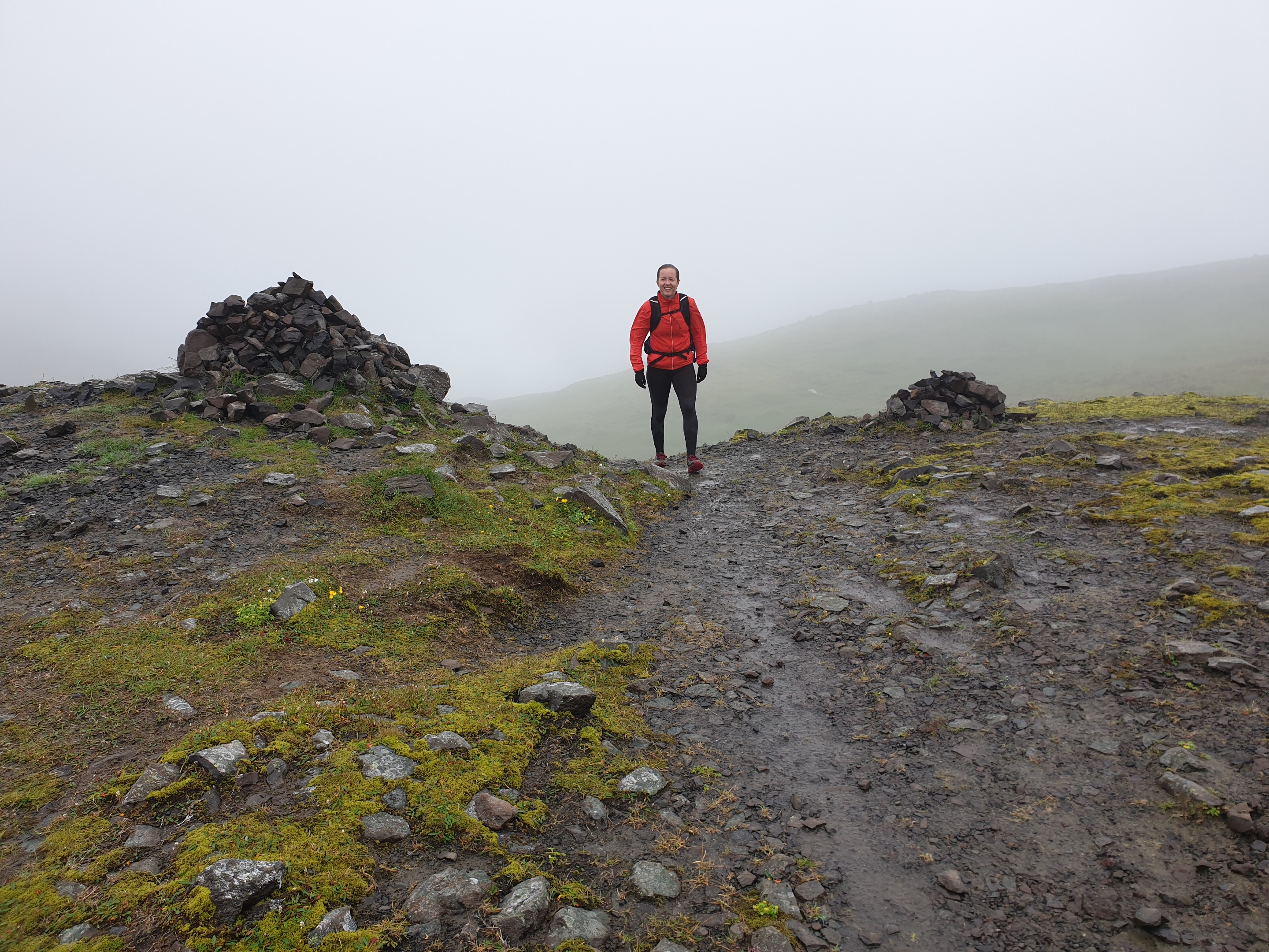 Þegar við vorum komin upp úr fjörunni komum við fljótlega auga á stíginn áleiðis inn eftir víkinni með stefnu á Súludal. Haftjörn var þarna á sínum stað og þegar við komum framhjá henni fór þokan að þéttast.