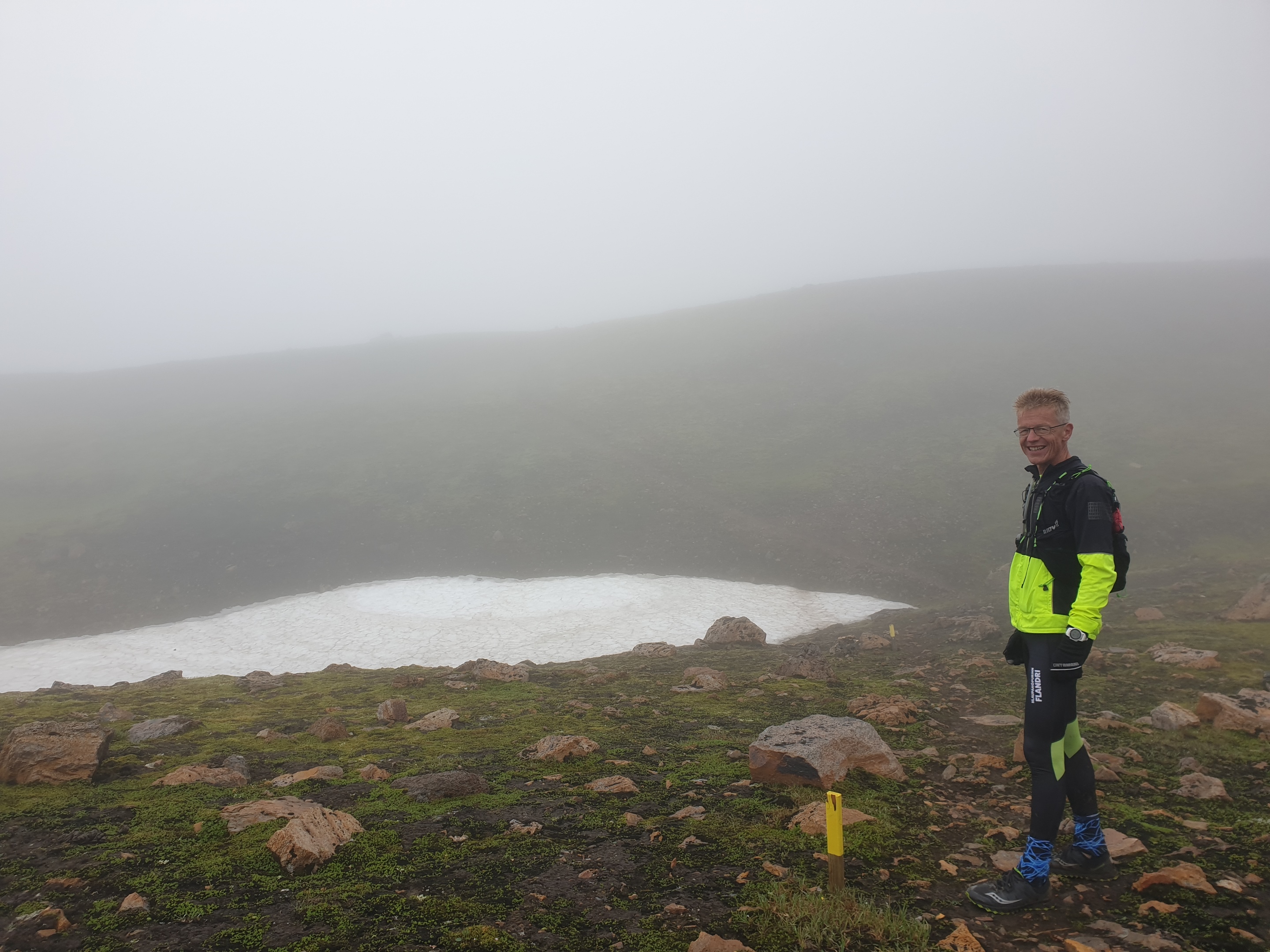 Enn þéttist þokan og súldin ágerðist. Hið rómaða útsýni úr Súluskarði var ósýnilegt þennan dag og myndatökur næsta tilgangslausar. Rétt sunnan við skarðið áðum við stutta stund í skjóli við kletta og tókum upp nesti. Þar voru um 8 km búnir af ferðalaginu, þar af rétt um 3,5 km frá neyðarskýlinu.