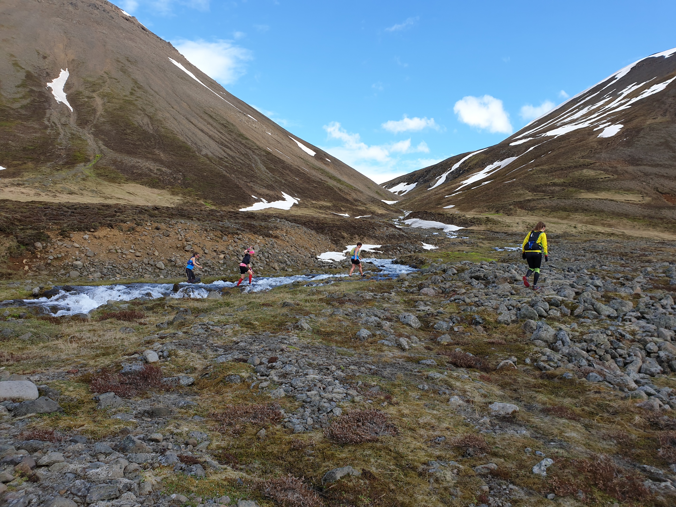 Líklega er á engan hallað þótt því sé haldið fram að enginn hafi gefið ítarlegri og skilmerkilegri leiðbeiningar í upphafi fjallvegahlaups en Orri á Garðsá gerði þennan dag. Áður en langt var liðið á hlaupið vorum við þó orðin meðvituð um að ef við hefðum munað allt sem hann sagði hefði okkur gengið betur að finna bestu leiðirnar. Það skolaðist sem sagt fljótt til hvar væri best að hækka sig eða lækka í hlíðinni til að hitta rétt á mismunandi gil. Örnefnin voru líka orðin nokkuð mörg og líklega nógu erfitt fyrir miðaldra fólk eins og flest okkar að muna giljanöfnin í réttri röð, þótt ekki væri annað; Garðsá, Gerðisá, Þramargil (nokkur), Kanagil, Fossgil, Kolgrafagil og Smiðjugil, svo eitthvað sé nefnt. Næst þegar von er á góðum leiðbeiningum ætti upptökutæki að vera með í för.