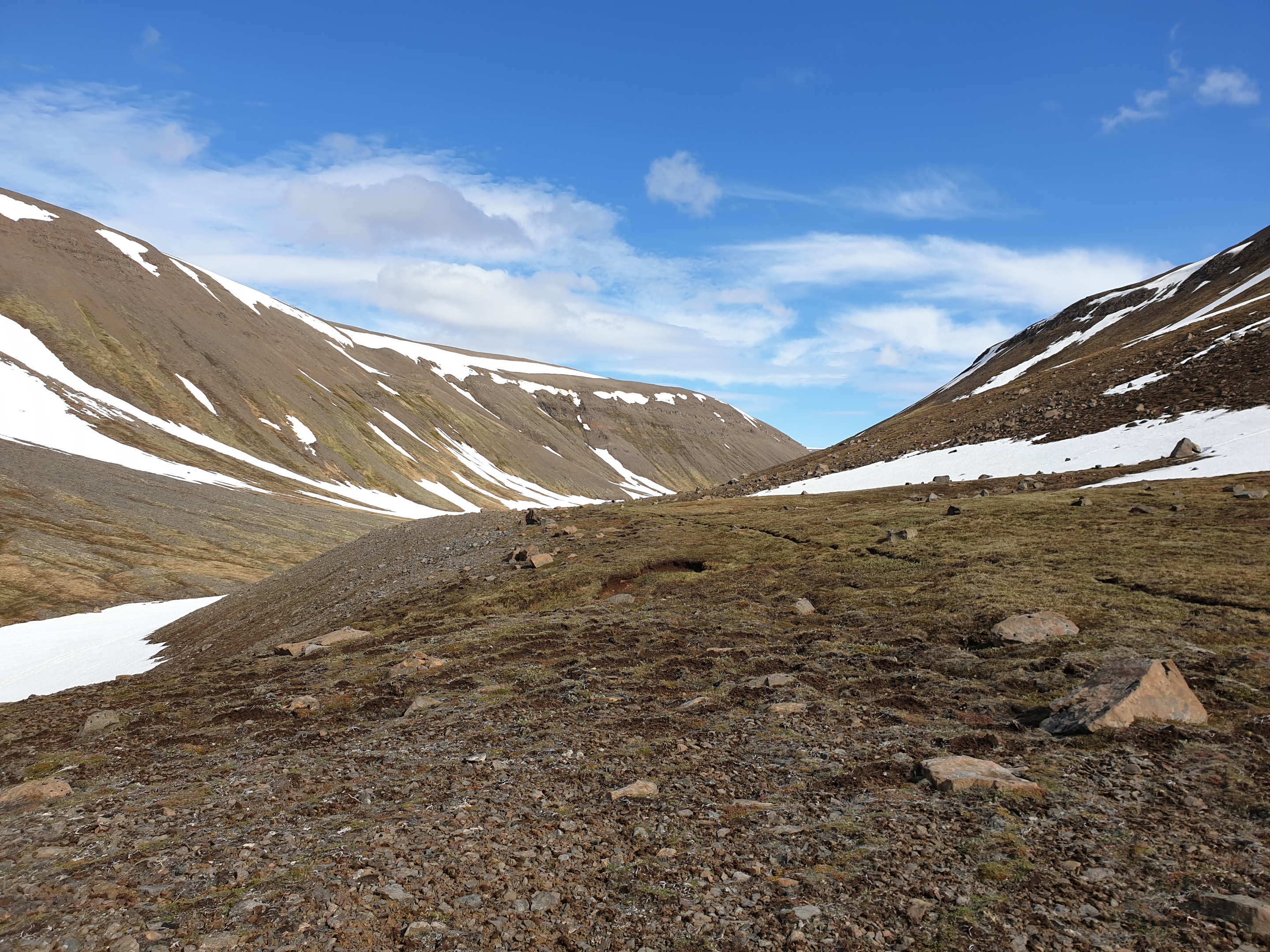 Okkur sóttist seint ferðalagið upp með Gönguskarðslæk, enda hittum við sem fyrr segir ekki á bestu leiðina þó að hún ætti eiginlega að vera frekar augljós. Þegar við vorum komin upp á hjallann sunnanvert við lækinn varð þetta allt auðveldara enda varð þar fyrir okkur greinileg hestagata.