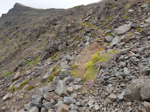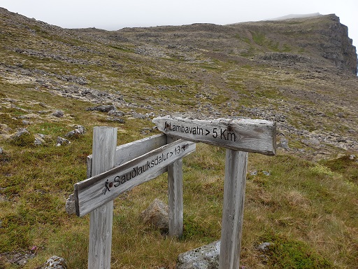 Vegamót við Hyrnur: 4,81 km (148 m), N65°30,23' - V24°10,22'Hæsti punktur: 6,76 km (336 m), N65°30,91' - V24°09,43'